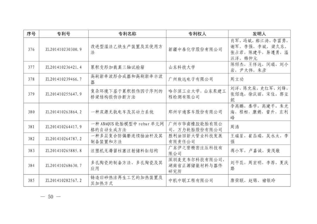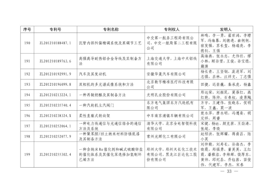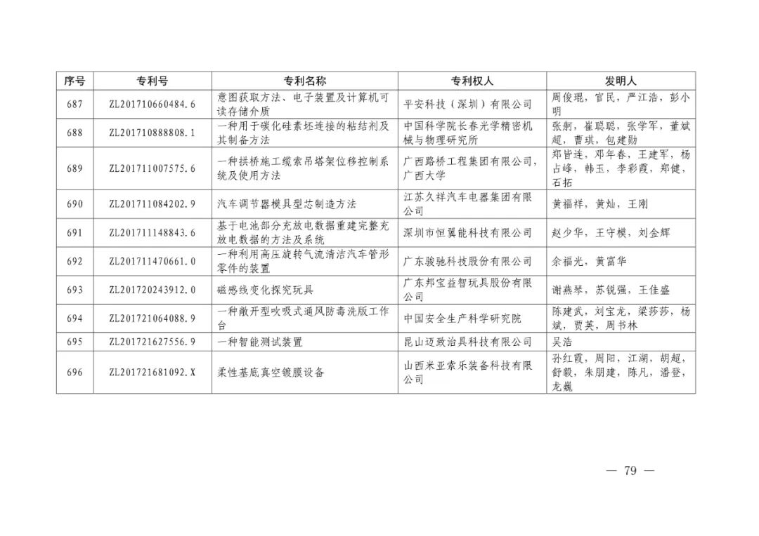 此外,根据推荐项目获奖情况,决定授予广东省知识产权局等8家单位中国专利奖组织奖,天津市知识产权局等20家单位中国专利奖组织奖,孙永福等12位院士中国专利奖推荐奖。