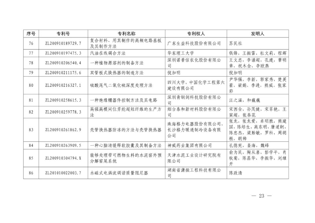 5.第二十一届中国专利奖项目名单